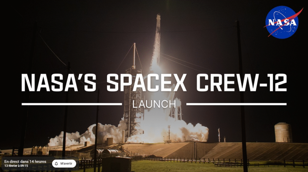 En ligne. La NASA diffusera l’intégralité de l’événement sur sa chaîne YouTube (NASA Live), son site web et l’application NASA+. SpaceX proposera également un flux sur sa chaîne YouTube et sur X. La couverture débutera plusieurs heures avant le lancement, avec les phases d’habillage de l’équipage, le trajet vers le pas de tir et les vérifications finales. Le CNES proposera un flux commenté en français.